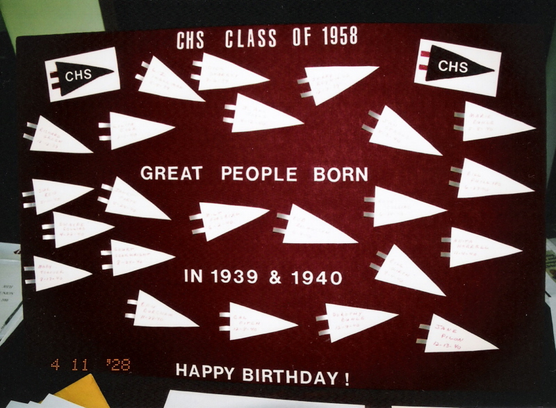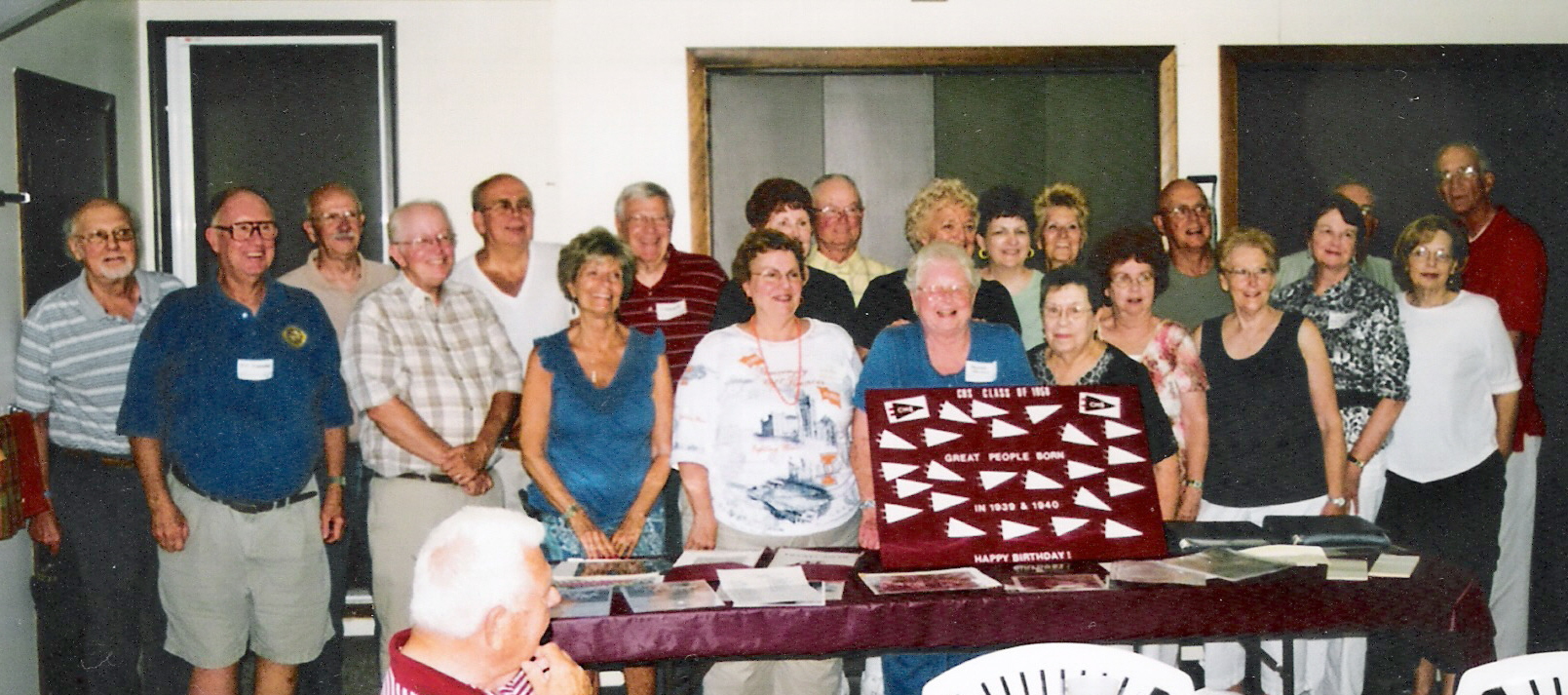 Front row, left to right - Bill Phillips, Milt Foresberg, Rich Green, Jane (Pilon) Armstrong, Lolita (Cole) Perdue, Liz (Ingleman) Michael, Sue (Reis) Christensen, JoAnn (Joyce) Pairman, Rose (Collins) Ely, Dorothy (Buhle) Szczepaniak, Marie (Buhle) Behberg.
